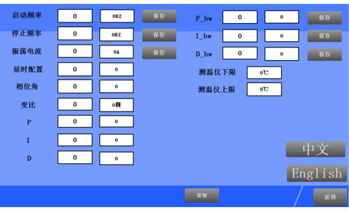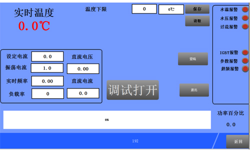 本電源有負載自適應功能,在不上主電狀態下,調整好負載之后,在電源內控模式下加熱,上位顯示屏自動給出負載的匹配狀態及諧振頻率供用戶參考調試。